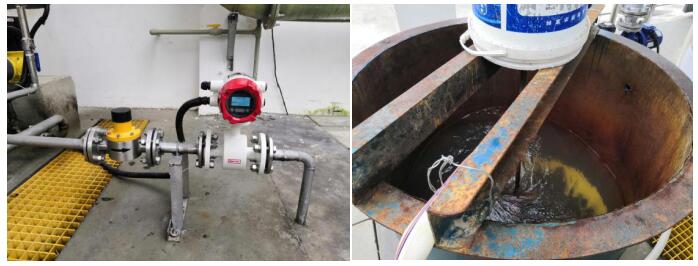 2020年8月,客戶向聯測成都辦事處反映他們使用的電磁流量計有不讀數和超聲波液位計屏幕指示燈不亮的情況。接到消息后,聯測工程師蘭工第一時間趕到現場,檢測過程中發現通往與管道相連電磁流量計的設備桶內,銹跡嚴重,由于液體黏稠將銹跡帶入了流量計,覆蓋住了測量電極,影響了流量計顯示。蘭工現場馬上同客戶一起清理設備內部,并替換了一臺新的電磁流量計。對原電磁流量計進行清洗后便可正常使用。