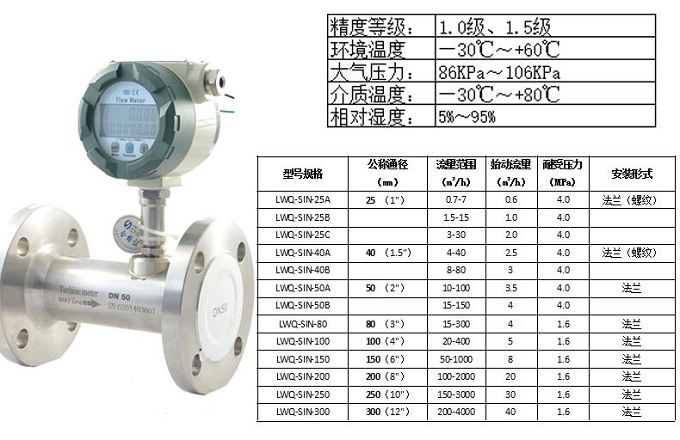 LWQ-SIN系列氣體渦輪流量計是集溫度、壓力、流量傳感器和智能流量積算儀于一體的新一代高精度、高可靠性的氣體精密計量儀表,具有出色的低壓和高壓計量性能。